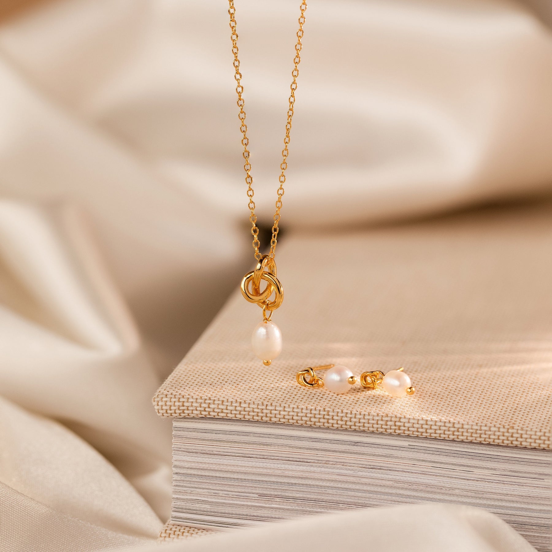 סט תכשיטים עדין הכולל שרשרת פנינה תלוייה + עגילי פנינה תואמים | לוק שלם, נקי ומדויק